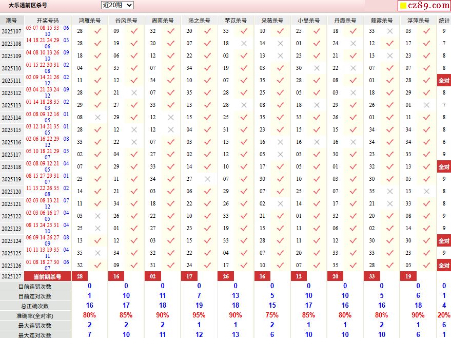 > 25年127期彩票专家超级大乐透前后区杀号图表